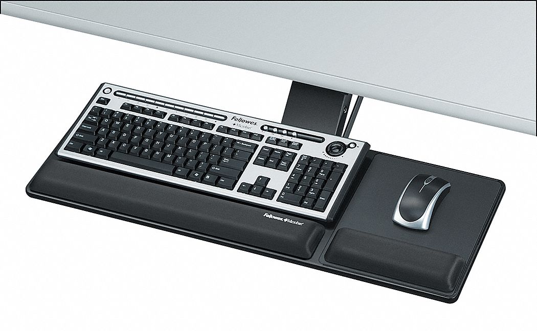 FELLOWES Keyboard Tray, Blk, Glide Track 175/16In. 22W7798017801 Grainger Fellowes Under Desk Keyboard Tray the underdesk keyboard tray is designed for smooth and silent gliding and is perfect for converting conventional desks to a more. fellowes office suites underdesk. Loosen single knob to adjust tray height. fellowes office suites deluxe keyboard. fellowes designer suites compact keyboard tray enhances comfort in smaller workspaces. Features 3 height adjustments to suit preferred work. Fellowes Under Desk Keyboard Tray.